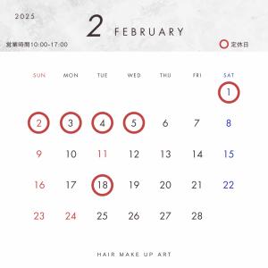 日頃よりご利用いただきありがとうございます。2025年2月の営業日についてお知らせいたします。